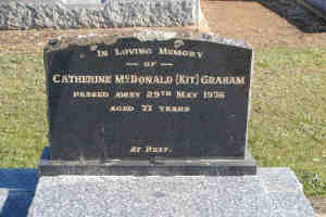 31. Catherine McDonald "Kit" Graham was born about 1899 in Lake Bolac, died on 29 May 1976 in Glen aged about 77, and was buried in Lake Bolac Cemetery.