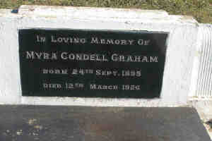 23. Merran Murray Graham was born in 1883 in Lake Bolac, died on 23 Jul 1961 at age 78, and was buried in Lake Bolac Cemetery. Another name for Merran was Tim.