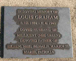 24. Louis "Paddy" Graham was born on 1 Dec 1884 in Lake Bolac, died on 8 Apr 1940 in Lake Bolac at age 55, and was buried in Lake Bolac Cemetery. The cause of his death was Cancer.