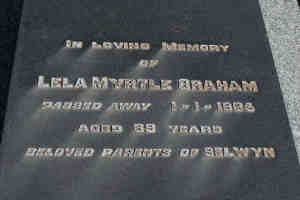 + 78 F i. Elizabeth Evaline "Eva" Graham was born on 19 Feb 1906 in Ballarat, died on 16 Oct 2006 in Vonlea Manor, Geelong at age 100, and was buried Cremated 21/10/2006 in Geelong Crematorium.
