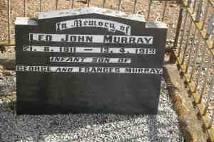 55. Leo John Murray was born on 21 Aug 1911, died on 13 Apr 1913 at age 1, and was buried in Lake Bolac, Cemetery.